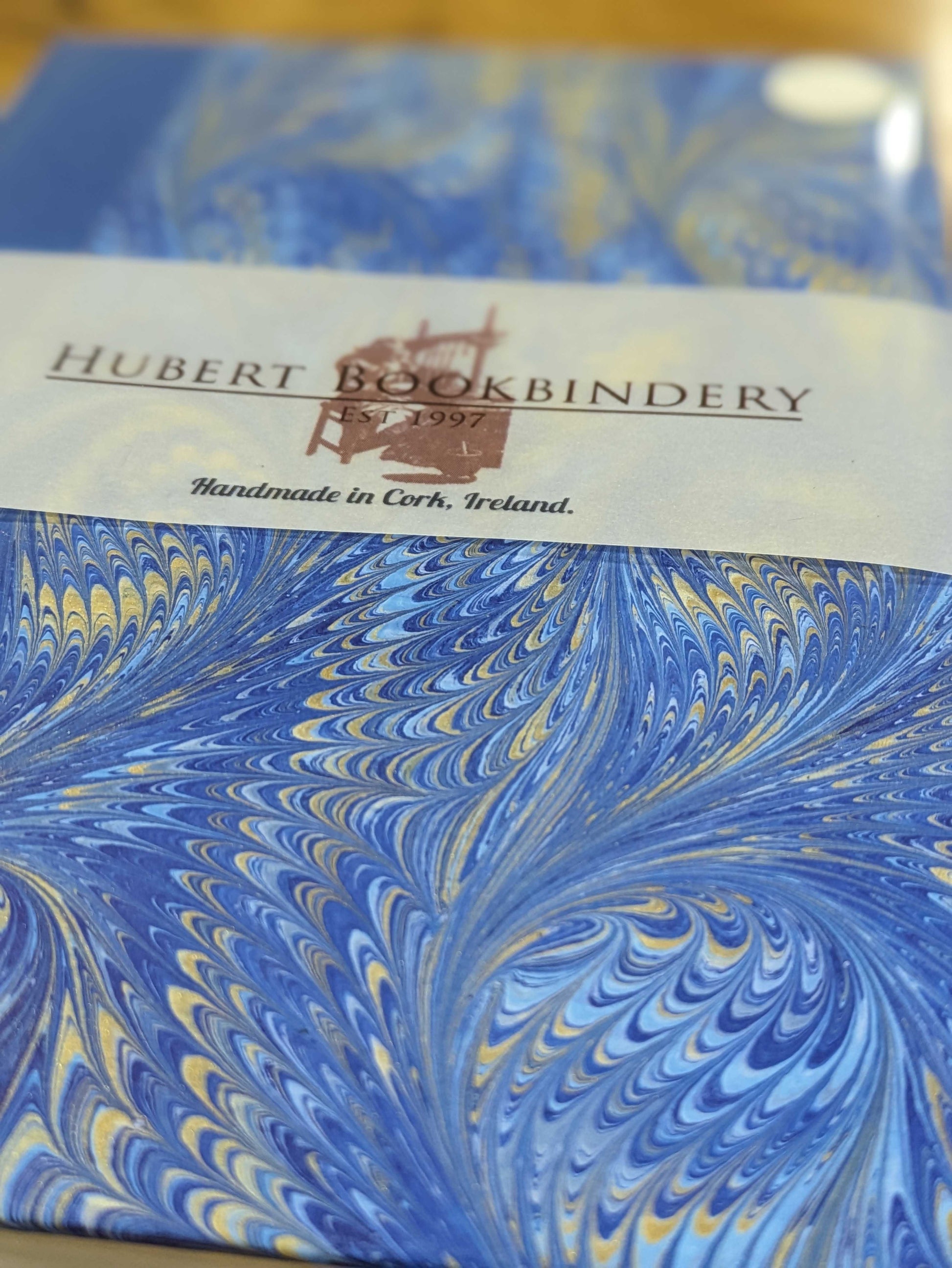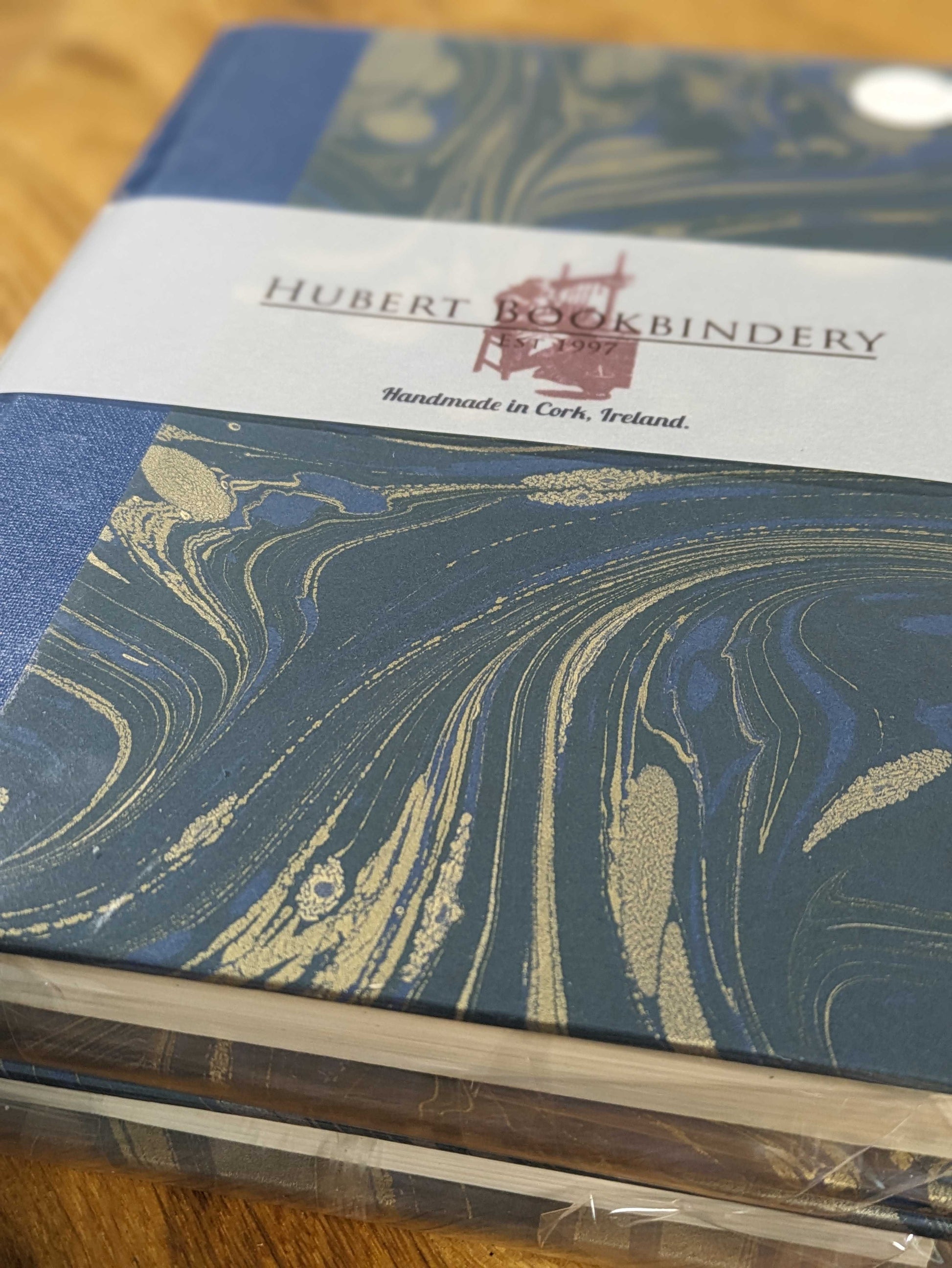 A gorgeous marble finish luxury notebook for all your writing needs. Each notebook is bound by hand using hand marbled paper and book cloth. Every notebook is made in the heart of Cork City. Each notebook is stitched together for writing and drawing ease and contains 140 leaves of high quality cream 100gsm lined writing paper.