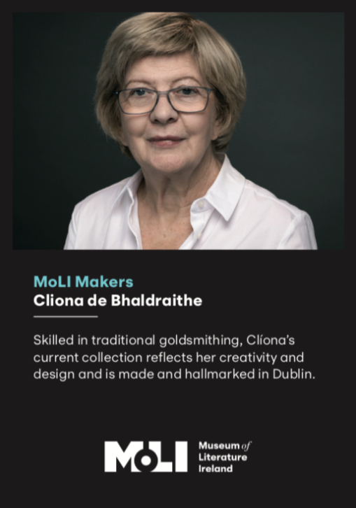 These beautifully crafted silver cufflinks have been designed exclusively for MoLI by Dublin based jeweller Cliona de Bhaldraithe. Inspired by James Joyce's iconic glasses, these lovely cufflinks are truly one of a kind. The cufflinks are hallmarked by the Dublin Assay Office in Dublin castle. Each pair is presented in a beautiful gift box and makes an excellent gift.
