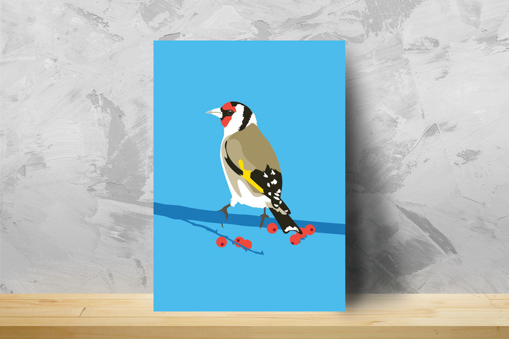 The iconic Goldfinch. Part of a series of Irish wildlife illustrations. They are imbued with Irish spirit and harness the power of colour to uplift and inspire.