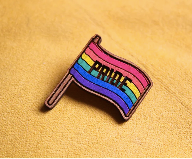 They take their unique design and laser burn it onto sustainably sourced wood. This design is of a Pride Flag!